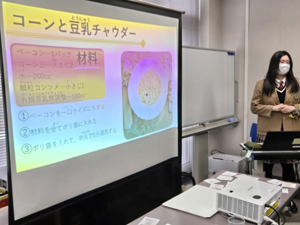 子供たちが考えたレシピを発表してもらった後、ボランティア部員が自ら考えたレシピを紹介しました。