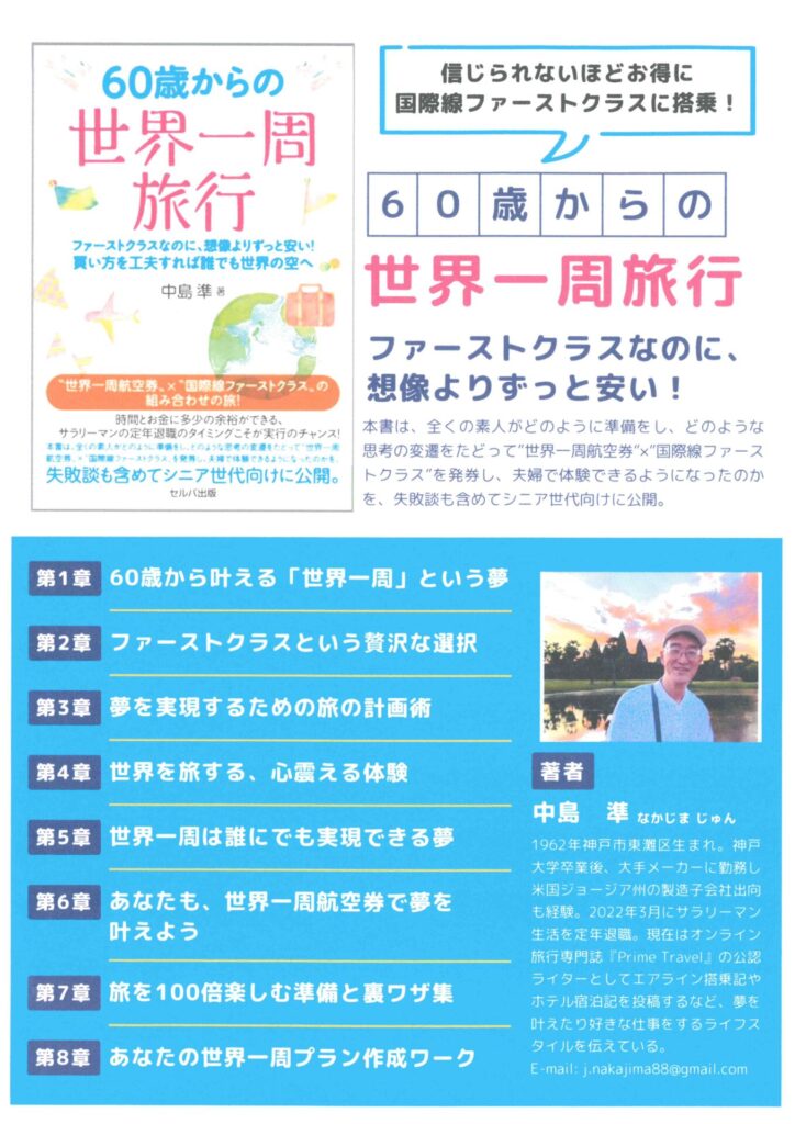 「国際線ファーストクラスへ乗ってみたいという憧れはありましたが、敷居が高く(という思い込みがあり)なかなか踏み出せずにいました。しかし、世界一周航空券ファーストクラスの存在を知って発券すると、信じられないくらいリーズナブルな価格に衝撃!を受けました。世界一周航空券の旅は、少しの勇気と準備があれば誰にでも実現できるものです。この本を読んで、『自分にもできるかもしれない』と思っていただけたなら、それが何よりの喜びです。」